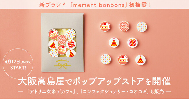 株式会社MNH(本社:東京都調布市 取締役社長:小澤尚弘、以下、MNH)は、2023年4月12日(水)~25日(火)の期間で、大阪高島屋内の高島屋ファームにてポップアップストアを開催します。同社の既存ブランドである「コンフェクショナリー・コオロギ」や「アトリエ玄米デカフェ」のほかに、新ブランド・まいにちを彩るラムネのプチギフトシリーズ「mement bonbons(メメントボンボン)」も販売します。