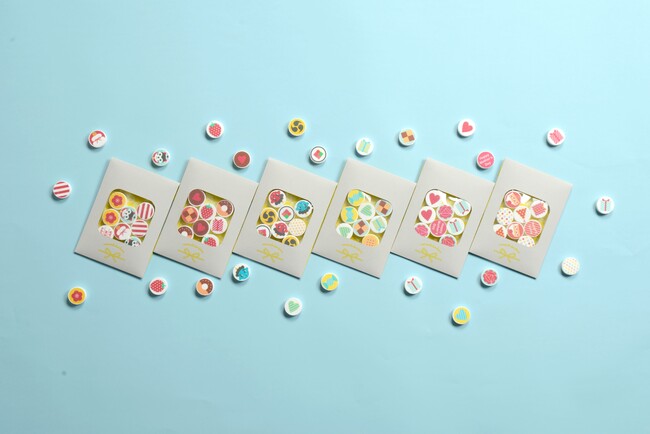「365日をHAPPYにする」というコンセプトから生まれたイラスト入りラムネ菓子「mement bonbons」は、1年中贈っていただけるプチギフトです。mement (メメント)は英語で「思い出・記念品」、bonbons(ボンボン)はフランス語で「お菓子」を意味します。季節のイベントや、ちょっとしたお祝い、記念日に贈っていただけるよう、シーンに合わせて12種類の柄をご用意しました。