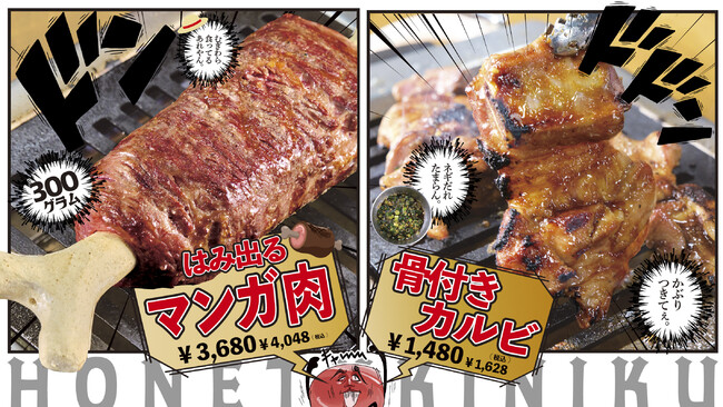 昨年SNSやテレビで話題になった「マンガ肉」が一部店舗での販売から、全店舗販売に拡大!より多くのお客様に楽しんでいただけるように、サイズを少し小さくしお値段もリーズナブルにしました。