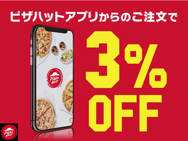 ピザハット公式アプリからご注文いただくと3%OFFでご提供。「生活応援セール」とも併用いただけます。