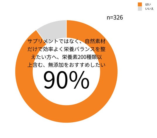 この度、全国の医療機関に勤務する管理栄養士326名に実際に本製品を試飲いただいた上で、「サプリメントではなく、自然素材だけで効率よく栄養バランスを整えたい方へ、栄養素200種類以上含む、無添加の「ゴールデンサジー(R)(純正サジー果汁100%)」をおすすめしたいと思いますか?」というアンケート調査※1を実施したところ、90%の方々からこの製品を推奨したいと回答をいただきました。