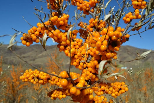 モンゴルでは昔からサジーを「聖なる果実」と呼び、古代ギリシヤ人が戦場での経験から「馬を輝かせる木」と呼んだサジー。ベリーの一種で多様な栄養素がギュッと濃縮されたサジー果実は、皮が破れやすく傷みやすいため収穫は難しく、加工や製造には技術が求められます。そんな生命力あふれる貴重なサジーは、健康をサポートするスーパーフードとしても注目されています。