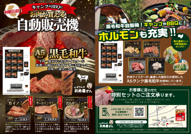 和歌山県伊都郡かつらぎ町に拠点を構えるかずさんのお肉屋さんが自販機の無人販売所を展開。和歌山では初となる黒毛和牛自販機の無人販売所となります。