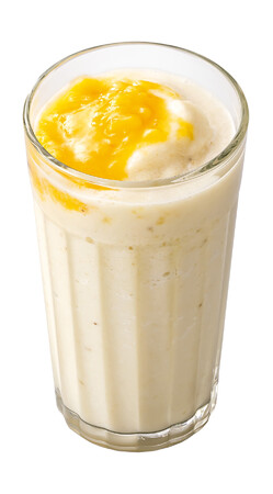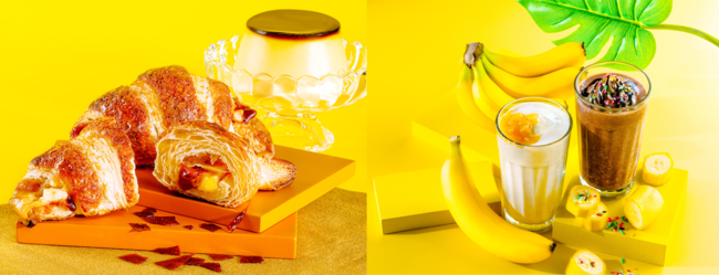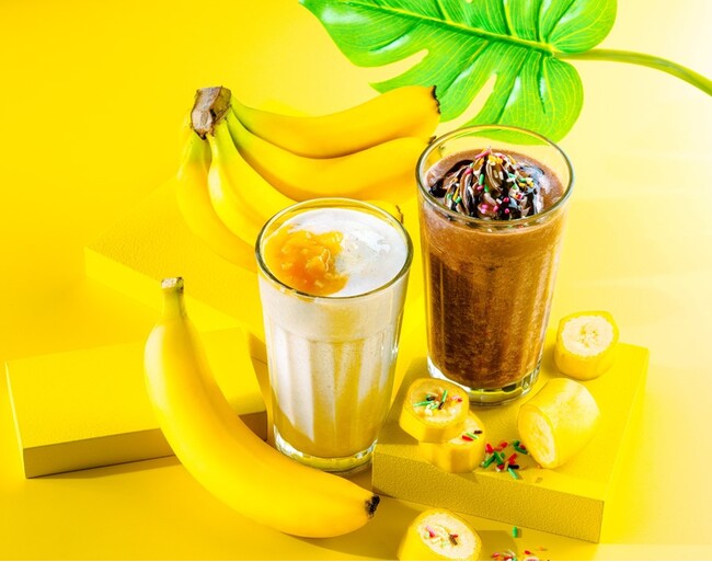 ドリンク2種類は“バナナ”に着目し、「フレッシュ!」「生バナナ」「まるごと」の3要素をキーに完成したスムージーです。新鮮なバナナを大胆にまるごと使用することで、まるでバナナそのものを食べているかのような味わいを楽しめる、まさにその名を体現 する商品です。