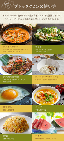 「ブラッククミン」は、ツタンカーメン王のお墓から発見されたり、クレオパトラが美容目的で使用したという歴史あるスパイス。現代においても、インドでは「パンチフォロン(東インドを代表するカレーのテンパリングオイル)」には欠かせないスパイスとして一般的に使用されており、EU諸国ではスーパーフードの一つとして様々な料理に取り入れられるようになっています。