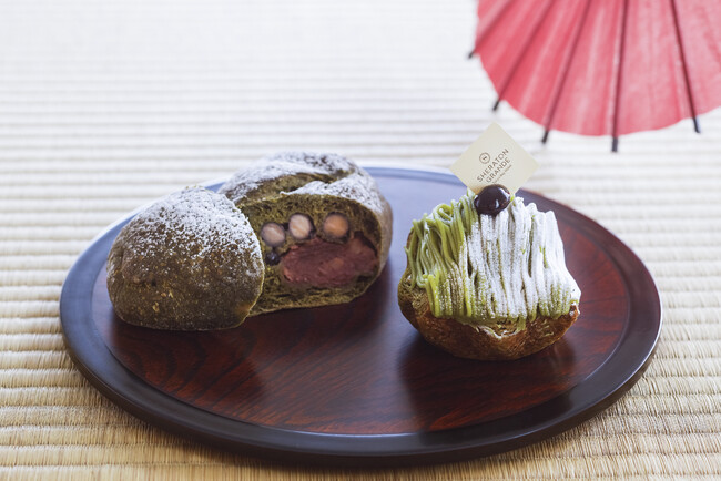 抹茶を練り込んだ生地に粒あんと黒豆をたっぷり入れて、風味豊かに焼き上げました。中身のモチモチとした食感がたまらない “リュスティック”をぜひお試しください。