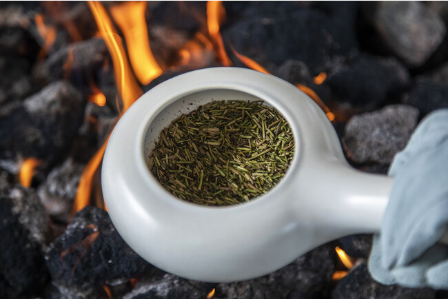 「THE LIVING GARDEN」内の焚火のリビングにて、ほうじ茶焙煎体験。「新緑園」の茶匠からお茶についてのお話の後、ほうじ茶焙煎のデモンストレーションをご覧いただきます。デモンストレーションの後は、いよいよほうじ茶焙煎。茶葉の色が茶色に変わり、香ばしい香りが辺り一帯に漂い始めます。自分だけのオリジナルほうじ茶を作る、貴重な体験をお楽しみください。