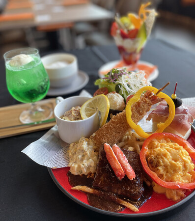 香り豊かなトリュフソースがたまらない、「牛肉のポワレ ズワイガニをのせて」といった、大人なメニューを中心に、海老フライやフライドポテトなどをワンプレートでご用意。デザートには「プリン ア・ラ・モード」、そしてアルコールドリンク(ランチドリンクにはアルコール入り「大人のクリームソーダ」も選択可)など、大人ならではの“ワクワク”も加わりました。