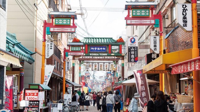 鶴橋駅・桃谷駅から歩いて10分の場所にある生野コリアタウンは、年間来訪者数はおよそ100万人と、平日でも多くの人でにぎわっています。