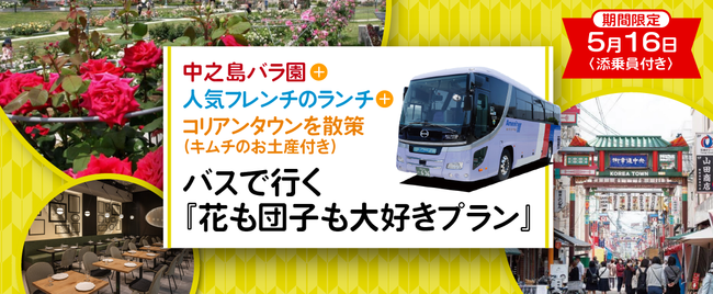 株式会社フォーティーズ(本社:大阪市鶴見区、代表取締役 岡武史)は【5月16日(月)限定大阪出発】《全国旅行支援》〈添乗員付き〉中之島バラ園+人気フレンチのランチ+コリアンタウンを散策(キムチのお土産付き) バスで行く『花も団子も大好きプラン』日帰りバスツアーのオンライン販売を開始しました。商品詳細はこちら【5月16日(月)限定大阪出発】限定プランhttps://4trip.jp/dome/plan/6569上記商品以外のお得な情報をお届けする公式LINE追加はこちらhttps://lin.ee/JAOTwl0