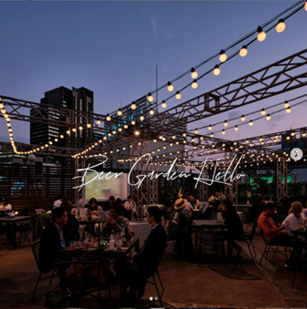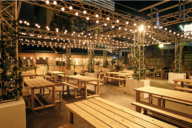 「新宿駅からすぐの屋上で世界を旅する。」をコンセプトに新宿エリアトップクラスの期間中3.7万人が来場した大人気BBQビアガーデンHello.が今年もオープン!屋上に広がる開放的な空間にある「空のアミューズメントパーク」がビアガーデンのテーマ。メリーゴーランドやエスニックなアートなど、ポップでフォトジェニックなフォトスポットを多数用意しています。暗くなってからは逗子海岸映画祭を手掛けるクリエイター集団、CINEMA CARAVANの映画も上映。日本と世界をテーマにした作品を視聴する体験を通して、アクセスの良い新宿駅の屋上でありながら、旅する楽しさを感じていただけます。