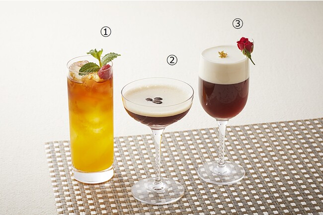 期 間:2023年5月1日(月)~6月30日(金) ご提供時間:11:00~17:00 店 舗:1F ロビーラウンジ「フォンテーヌ」 料 金:お一人様 6,325円 6,957円 ※ほうじ茶、スミックティーの紅茶含む 16種類のフリードリンク付 <メニュー> ・上段/チョコレート細工菓子、ほうじ茶のプリン ・中段/ほうじ茶のテリーヌ、ほうじ茶のロールケーキ、 ほうじ茶のクレープ、ほうじ茶のムース、 よもぎのパウンドケーキ ・下段/粟麩とシーフードのサラダ オリーブ白醤油、筍のホットドッグ、ポークとチキンのテリーヌ ・別皿/スコーン2種(プレーン・みたらし胡桃)ほうじ茶クリーム付 ・ほうじ茶、紅茶、コーヒー付 ※料金には消費税・サービス料(15%)が含まれます。 ■「森乃園」のほうじ茶をバーテンダーが趣向を凝らしてアレンジした香り豊かな創作カクテル