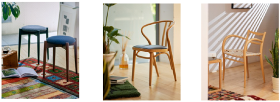 第一弾として、100年以上の歴史を誇り、伝統的な曲木技術や美しさが際立つ、日本唯一の曲木家具工
