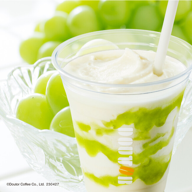 ヨーグルト風味のフローズンに、長野県産シャインマスカットとアロエの葉肉を使用したソースを合わせました。マスカットの爽やかな香りが楽しめるフローズンドリンクです。