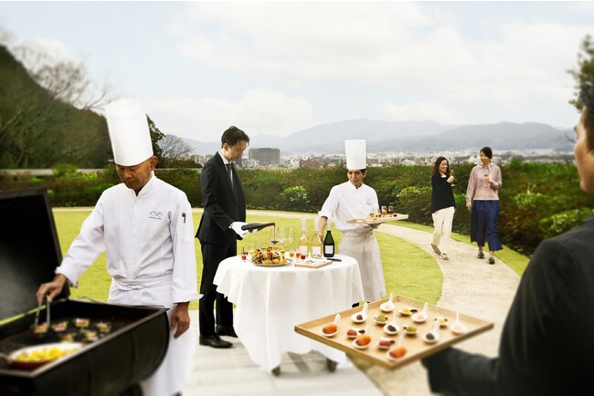 京都東山の華頂山の麓、高台に佇むウェスティン都ホテル京都。立夏を越えて華頂山の木々が青々と眩しく、アウトドアでの食事が心地よい季節になります。ホテル館内にありながら京都市内の街並みが一望できる屋上庭園でフランス人シェフ、ドミニク・ブシェがご提案する料理、ワイン、眺望、季節を愛でる一日限りの優雅なフレンチバーベキューイベント「バーベキュー・シック」を開催します。