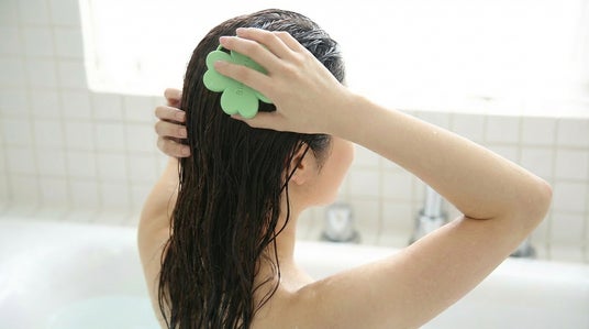 頭でシャンプーを泡立てた状態で、突起が頭皮に当たるようにして、やさしく動かしてください。