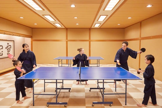広々とした空間の中に卓球台を2台設置し、滑りにくいフロアマットを敷くことで安全面にも配慮しています。子どもから大人まで安心して夢中になれ、温泉でくつろいだあとに軽く身体を動かしてリフレッシュできる、日本ならではの“温泉と卓球”の楽しみ方を味わえます。