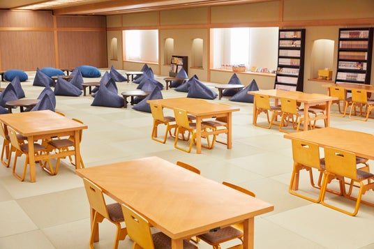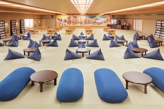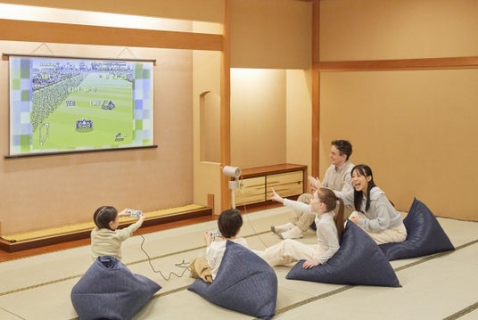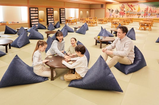 需要が減少していた和宴会場を再生し、約650平方メートル の大空間を、ゆったりと過ごせるエリアから身体を思いきり動かせるアクティビティエリアまで、多様な過ごし方に対応する5つのゾーンで構成しています。日本人には馴染み深く、海外の方にも好評の畳を取り入れた空間には、懐かしい日本の玩具のほか、土地の歴史にまつわる書籍や絵本、人気の漫画約3,000冊をそろえました。さらに、ボルダリングや卓球など身体を使って楽しめるエリアに加え、未就学児も安心して過ごせるスペースも備えています。アルコールを含むドリンクやスナックもオールインクルーシブで利用でき、小さなお子さまからお年寄りまで世代を超えた交流を育む、心地よいひとときを提供します。