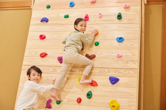 体を動かして楽しめる、アクティブな遊びの空間です。ボルダリングウォールを設置し、屋内でも気軽に体を動かせます。床にはクッション性の高いマットを敷き、万が一落下した際にも安全に配慮した設えとしました。この空間には、おもちゃは置かず広々としたスペースを確保し、周囲を気にせず安心して体を動かせる環境を整えています。お子さまが安心して挑戦できるよう配慮した空間です。