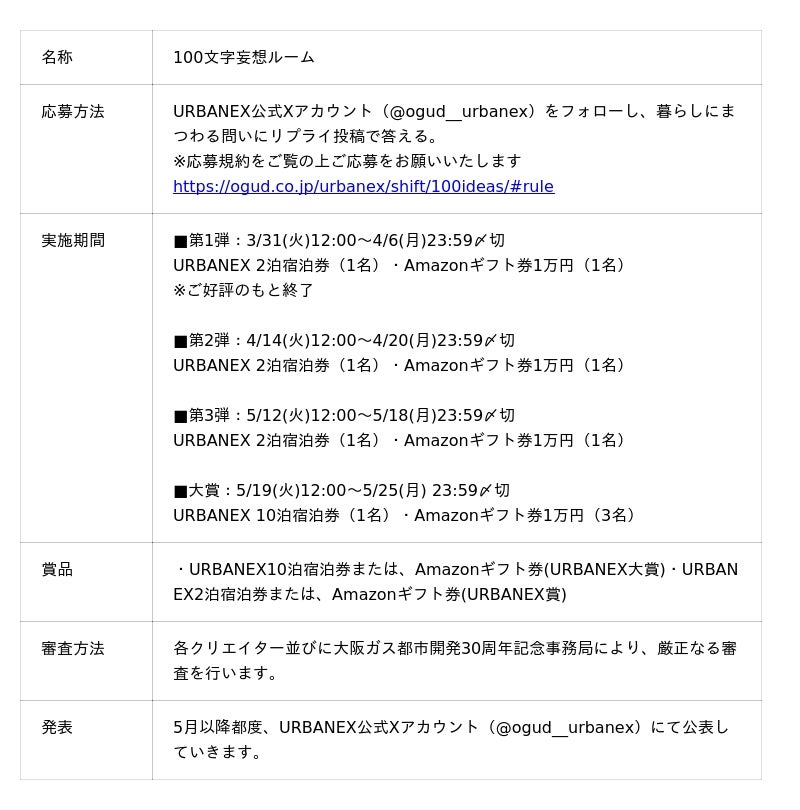 ■ URBANEX LIVING SHIFT|100文字妄想ルーム XキャンペーンURBANEX賞 概要