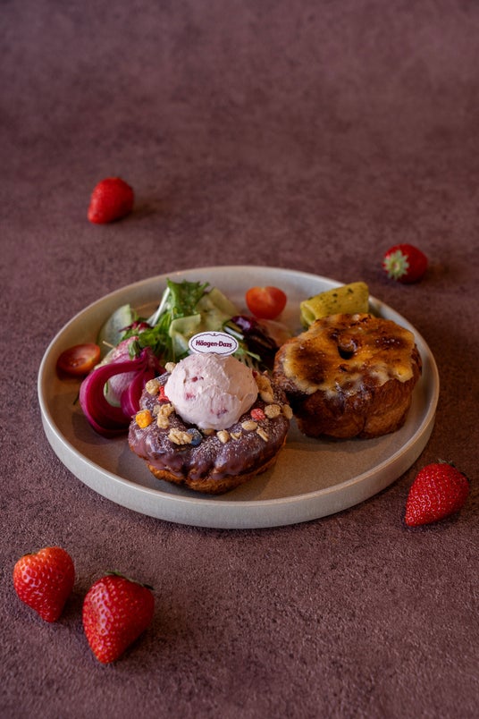 ハーゲンダッツ ストロベリーを主役に、クロワッサンドーナツを選んで楽しむ限定プレート。