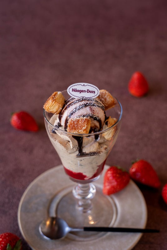 木苺の酸味とコーヒームースのコクに、ハーゲンダッツ ストロベリーの華やかさを重ねた限定パルフェ。
