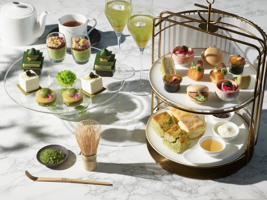 6月は新茶が香る初夏の季節であり、同時に雨の季節の始まりでもあります。緑がいっそうみずみずしさを増すこの時期にお届けするアフタヌーンティーのテーマは「抹茶」。フレッシュなお茶のほろ苦さと甘みが重なり、清涼感あふれる味わいのデザートが並びます。