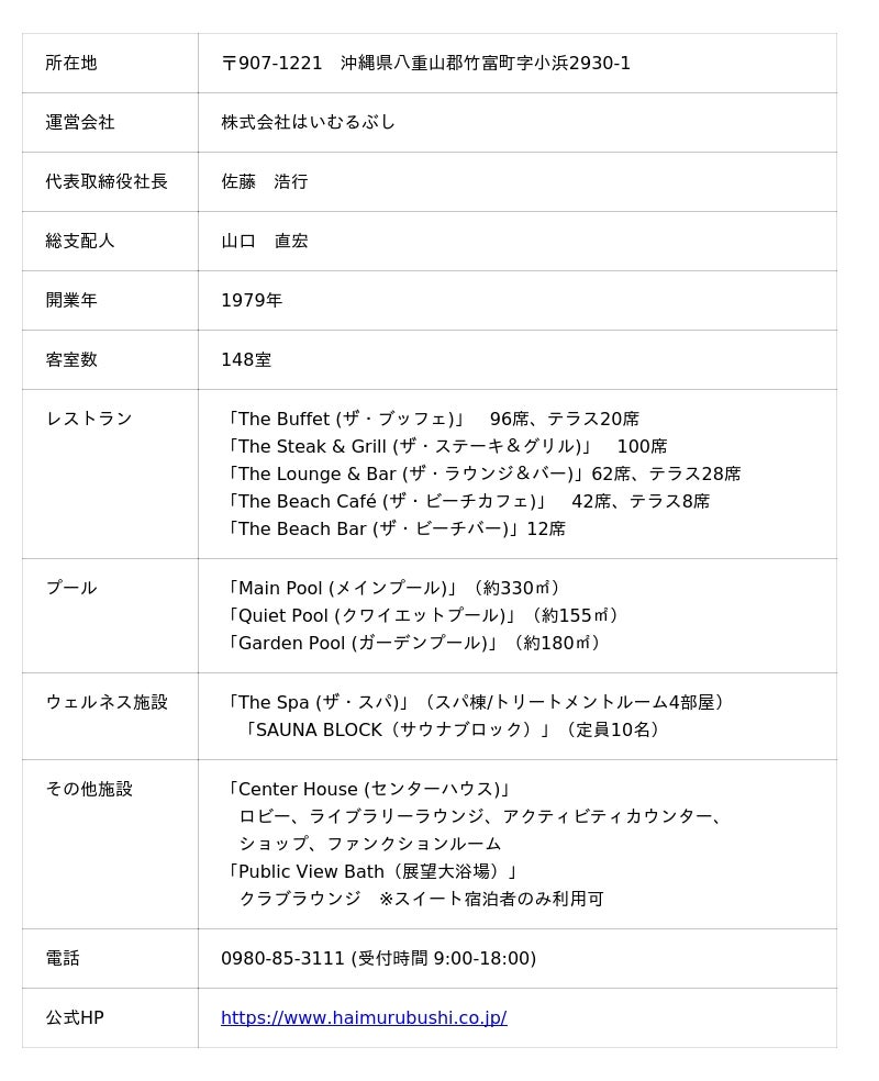 ※参照リリース「『はいむるぶし』2025年7月15日(火)リニューアルオープン」