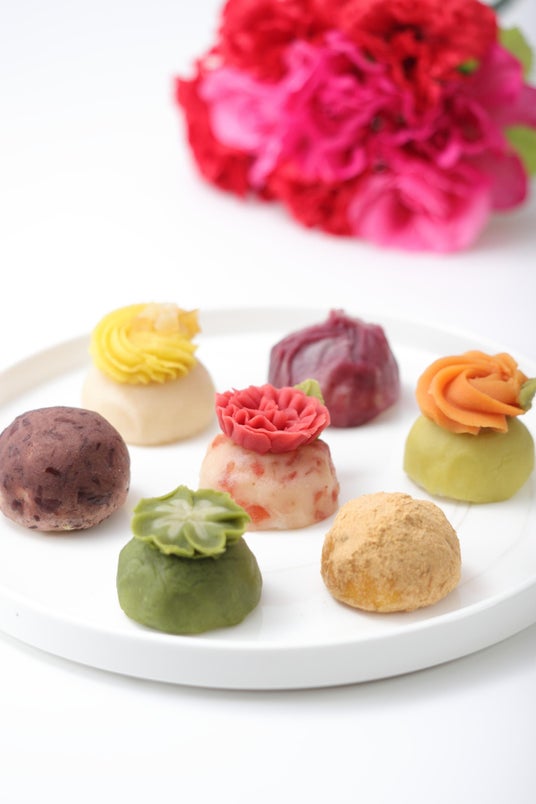 素材にもこだわり、使用する餡は全て、兵庫県芦屋市で創業100年を超える御菓子司 杵屋豊光の白こし餡(北海道産手亡豆)を使用し、なめらかな口どけと気品ある甘さを実現。彩りには天然色素を用い、見た目の美しさだけでなく身体にもやさしい味わいに仕上げました。