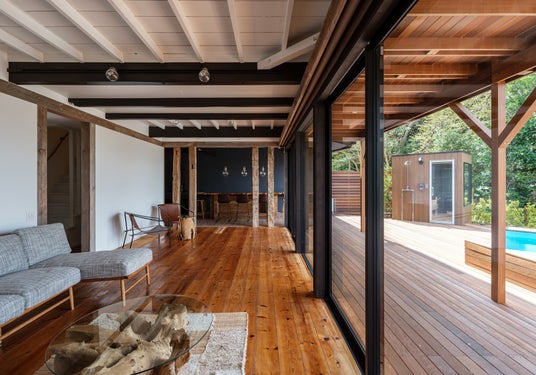 母屋、2棟のトレーラーハウス、フィンランド式サウナ&プール、ウッドデッキ&バーベキュースペース。5つの空間がひとつの宿のなかに共存し、その日の気分や一緒にいる人との距離感に合わせて、自分だけの居場所を選べます。そんな自由さが、日常の輪郭をそっとほどいてくれる宿です。