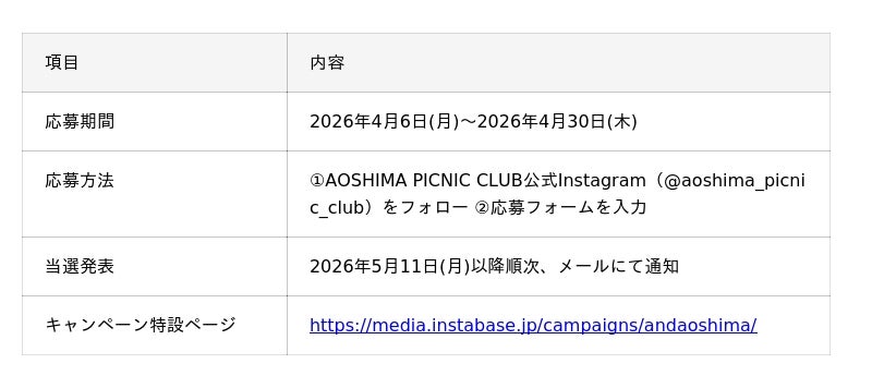 AOSHIMA DISCOVERY TOURSのリリースを記念し、インスタベースを運営する株式会社Rebaseと連携した地方活性化プロジェクト第3弾として、「& AOSHIMA(アンド アオシマ)」キャンペーンを実施いたします。