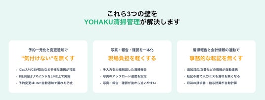 ■「YOHAKU清掃管理」が提供する、3つの解決アプローチ