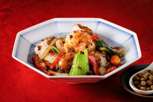 大粒の海老と彩り豊かな野菜を、黒大豆を発酵させた旨み調味料「豆鼓(トウチ)」の香り豊かなソースで炒めました。豆鼓の深いコクが全体を包み込み、海老のぷりっとした食感と野菜のシャキシャキ感が絶妙なアクセントになります。豆鼓ならではの芳醇な旨みが贅沢な余韻を残す、本格的な味わいをお愉しみください。