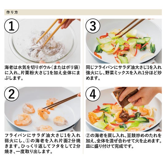 ◆大粒海老と彩り野菜の豆鼓炒め(2人前 調理時間 10分)