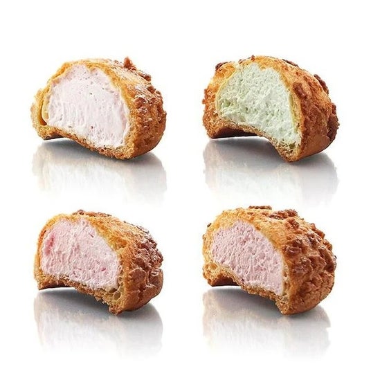 「桃香」「桜香」「梅香」「香の苺」詰め合わせザクザク食感のクッキーシューに、あかつき桃のクリームがたっぷり詰まった人気の「桃香」。さらに「桜香」「梅香」「香の苺」を加えた4種セット。国産純生クリームをブレンドした、上品でやさしい甘さのシュークリームです。