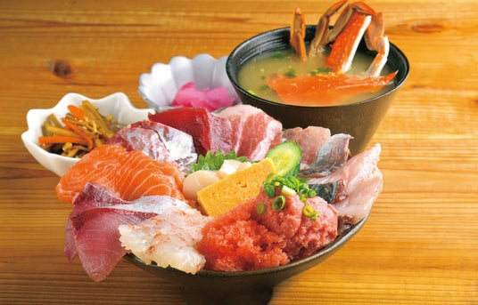 積丹半島に構える民宿&食堂で、前浜産の魚介を豪快に盛りつけた海鮮丼が看板メニュー。“やん衆切り”と呼ばれる豪快な厚切りの日替わりネタが丼からはみ出す、インパクト大の「海鮮泊丼」が人気で、産卵前の肉厚のヒラメをはじめ、タコやイカなど、前浜産の新鮮魚介が主役です。1日60食~70食限定なので、早めの来店がおすすめ。