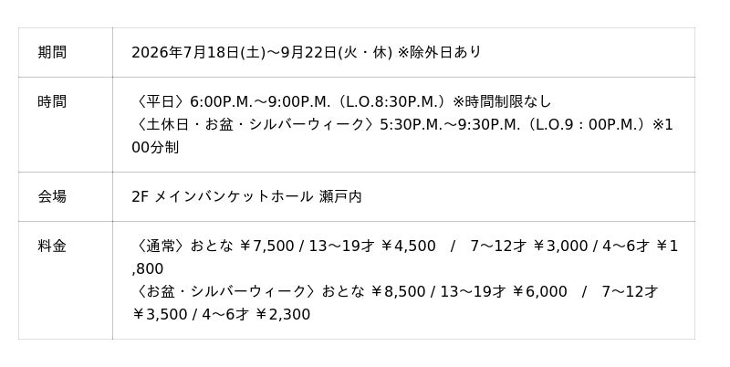 【期間】2026年7月18日(土)~9月22日(火・休) ※除外日あり
