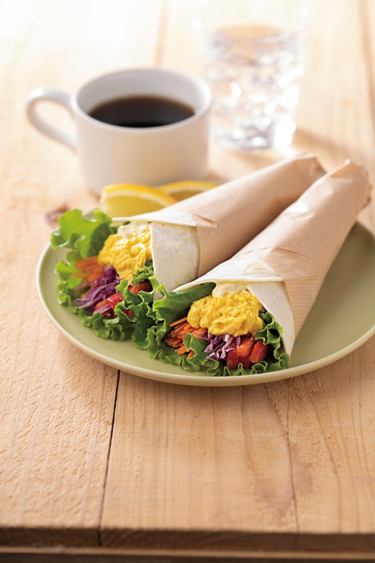 業務用商品のメニュー例:ソイスクランブルと野菜のラップサンド