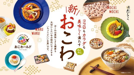このたび登場するのは、管理栄養士監修の新たなラインアップ「おこわールド」。“旅するように楽しむ”をコンセプトに、世界各国の人気グルメをおこわで表現した具材たっぷりの新感覚メニューは、おいしさだけでなく、見た目、おこわのもちもち食感も楽しむことができます。