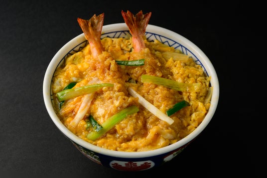 ごま油で香ばしく揚げた海老天2尾と長ねぎを、こだわりの「かえし」を使った丼つゆで旨みが出るまで煮込み、玉子でふんわりとじました。卵の半熟感と出汁の効いたまろやかな味わいで、幅広い層のお客様にお召し上がりいただけます。
