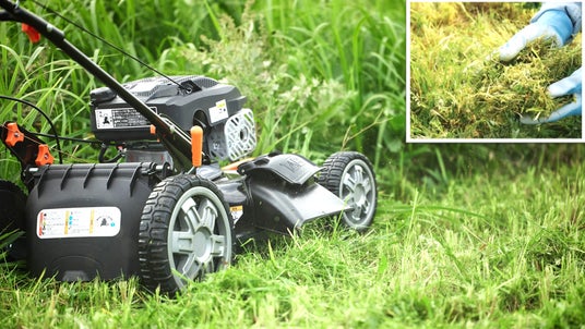 刈った草はサイドもしくはリアからの排出か、マ?チング(*4)が可能です。刈った草は粉砕されるので、そのまま放置しても土に還りやすく、刈った草処理の手間が省けます。