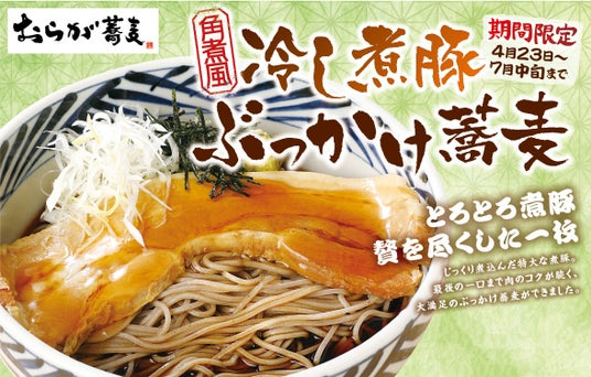 グルメ杵屋グループの株式会社グルメ杵屋レストラン(大阪市住之江区北加賀屋三丁目4番7号、代表取締役社長:吉田 正敏)が運営する「おらが蕎麦」では、2026年4月23日(木)より期間限定メニューとして「角煮風 煮豚ぶっかけ蕎麦」を販売いたします。