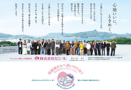 株式会社セシールは1972年の創業以来、通信販売業界の中でも歴史ある老舗企業として長きにわたりお客様に愛され続けてきました。今回のポスターには、セシール創業の地である自然豊かな香川県で働く仲間たちの写真を起用しました。新ブランドスローガン「心地いいに、ときめく。」に基づく「心地いい商品やサービス」の背景には、毎日お客様のことを想って働く"人"の存在があります。その存在こそが、セシールの誠実さとあたたかさを体現していると考えているからです。