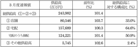 〇3月度の総供給高は、101.4%で前年超えとなりました。