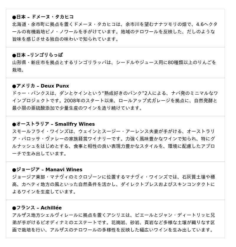 -日本および世界各国のナチュラルワイン生産者が東京に集結-