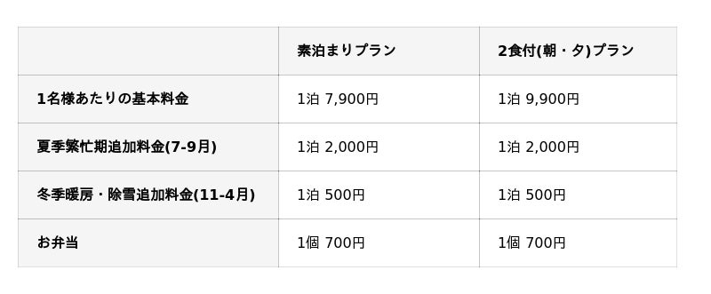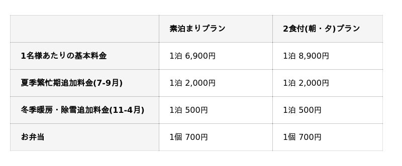 ※ 別途宿泊税100円/泊がかかります