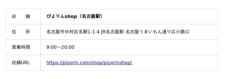 2026年6月15日(月)には名古屋駅中央コンコースに新店舗「ぴよりんvillage」が開業予定です。