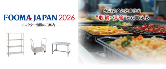エレクター株式会社(本社:東京都目黒区、代表取締役社長:柳屋 司)は、2026年6月2日(火)から5日(金)まで東京ビッグサイトで開催される「FOOMA JAPAN 2026」に出展いたします。ブース番号は【E7-16-17】です。