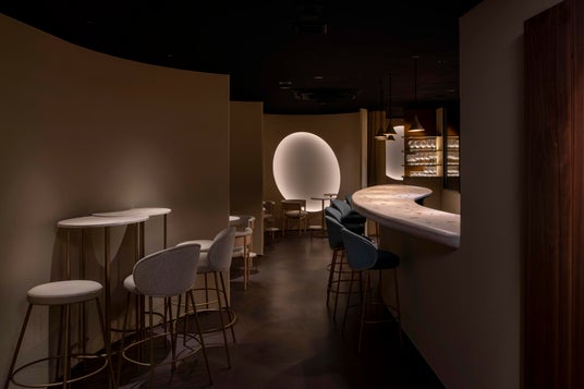 テーブルには左官技術が用いられ、壁や床には、ワインが育まれた大地を思わせる自然の素材が溶け込んでいます。カウンターには色鮮やかな天然石、ラウンジテーブルには牡蠣の貝殻。人工的に区切られた時間ではなく、柔らかな境界の中で、自分自身の感覚へと静かに向き合っていける空間を追求しています。