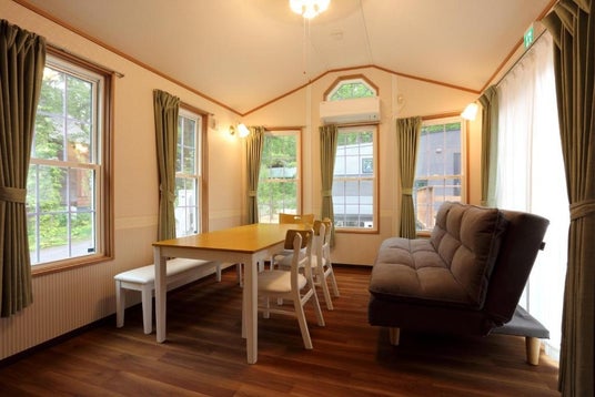 白馬の山麓の自然に囲まれたグランピング施設。トレーラーハウスやドームテントなど多様な宿泊タイプを備え、快適なグランピング体験が楽しめます。キッチン設備も充実しており、地元食材を使った料理やBBQなど、家族で楽しむ“マウンテンリゾートステイ”を満喫できます。